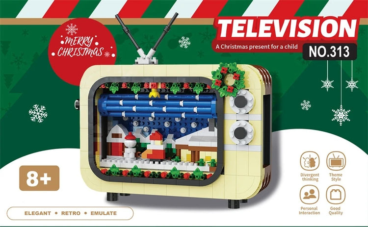 Christmas Retro Tv Building Blocks Assembly Building Blocks Xmas Gift Mini Bricks Diy Assembly Educational Toys Plastic Model