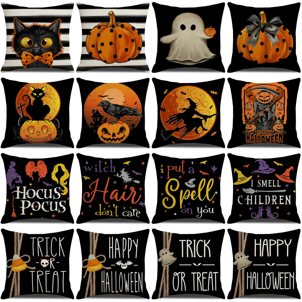 2025 Halloween Cushion Cover Halloween Decoration for Home Ghost Pumpkin Bat Pillowcase Horror Trick Or Treat Party Supplies