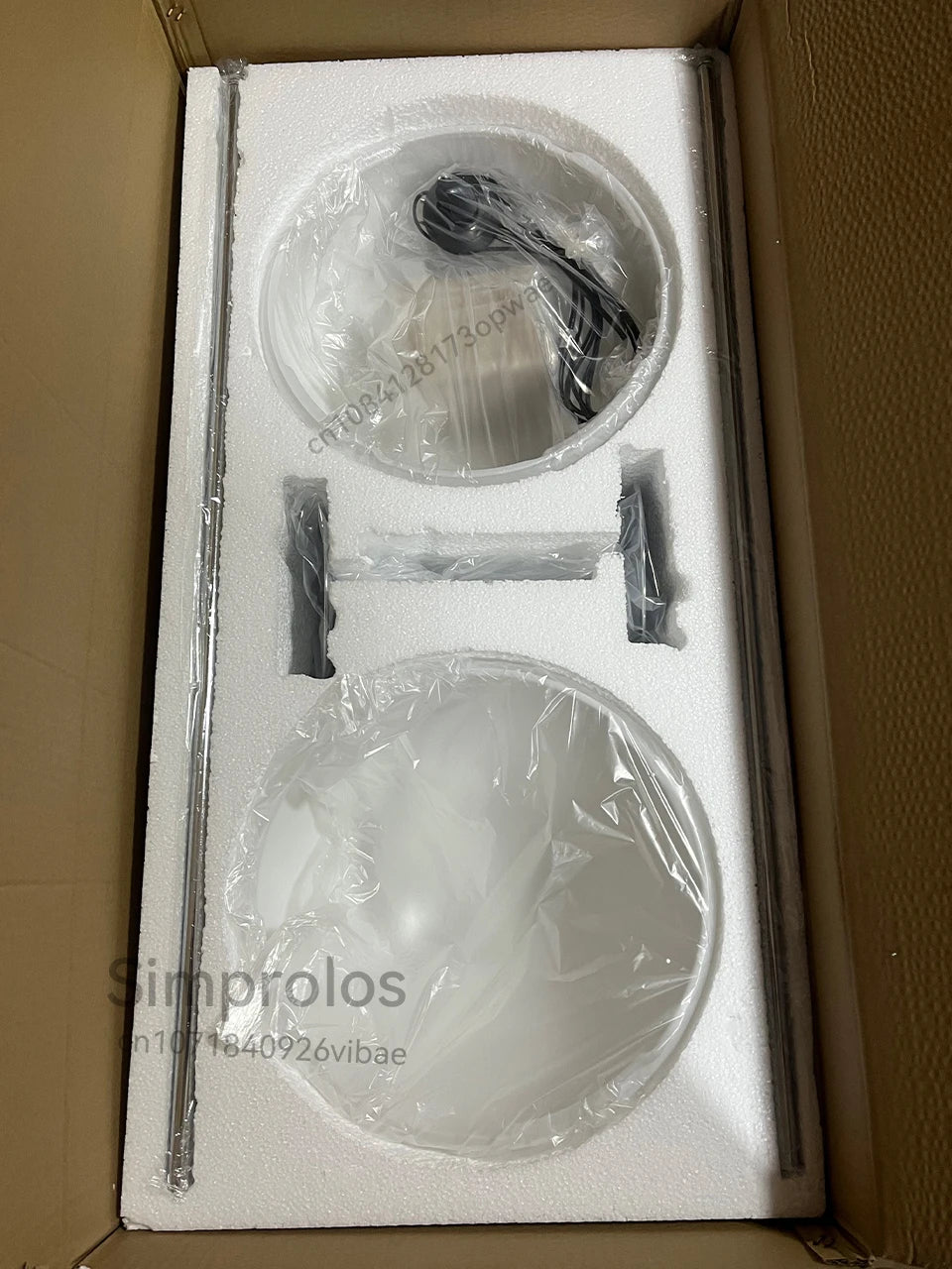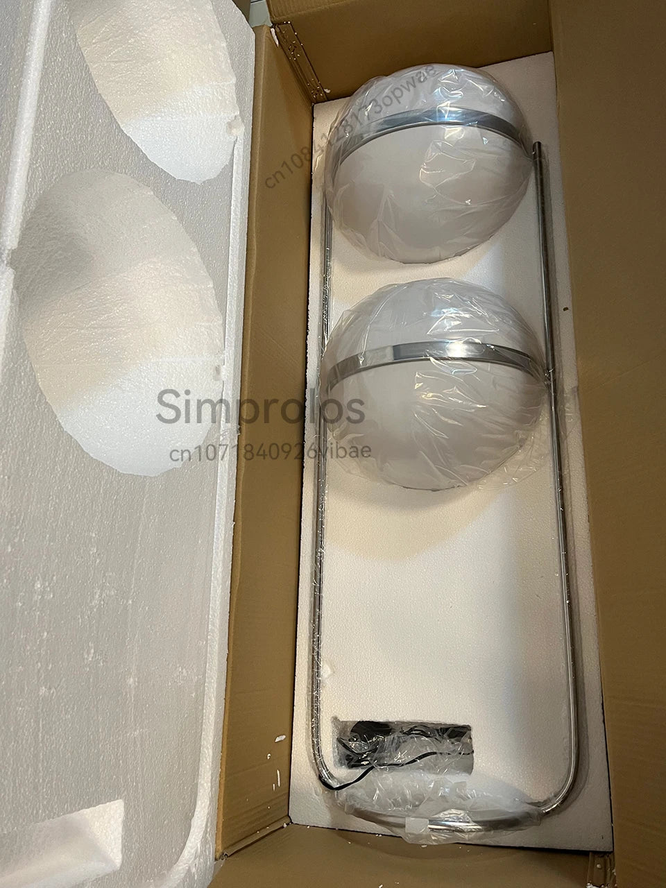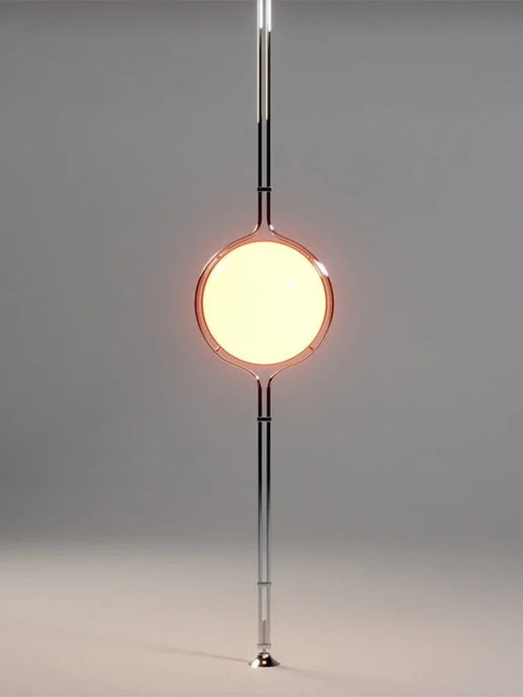Enhance your space with this stunning floor-to-ceiling lamp, marrying style with practicality. Made of high-quality acrylic balls, it brings sophistication and becomes a striking focal point in any room. The lamp features a metal structure with twin rods holding beige plastic half-globes, offering a modern look.