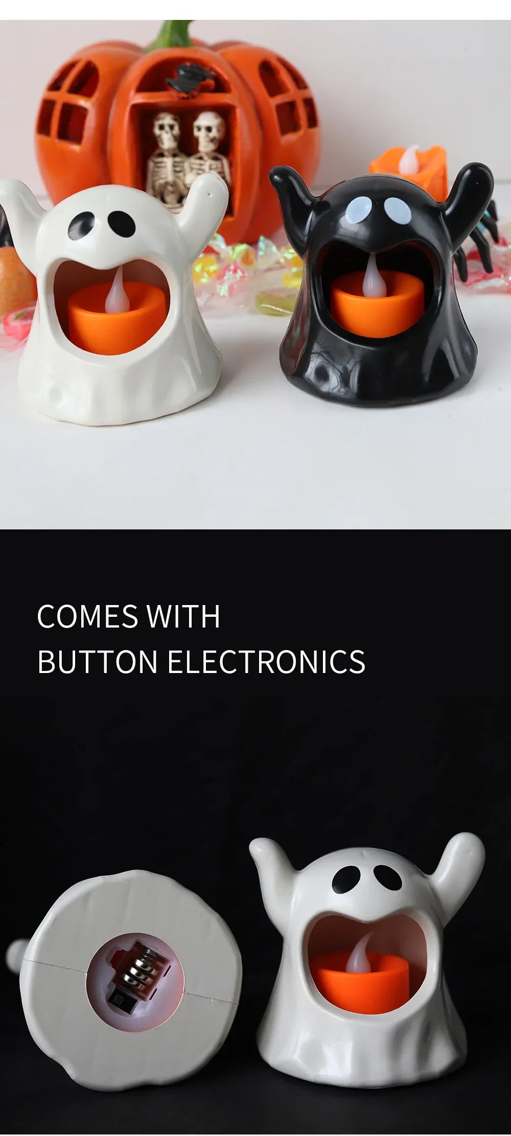 2025 New Halloween Ghost Lamp With LED Flameless Candles Decorative Halloween Party Ghosts Horror Atmosphere Props Decoration