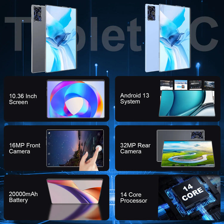 2025 Tablet Android 20000mAh 10.36 inch Global Version 22GB+2TB New Network 14 Core Android 13.0 Wifi Tablet