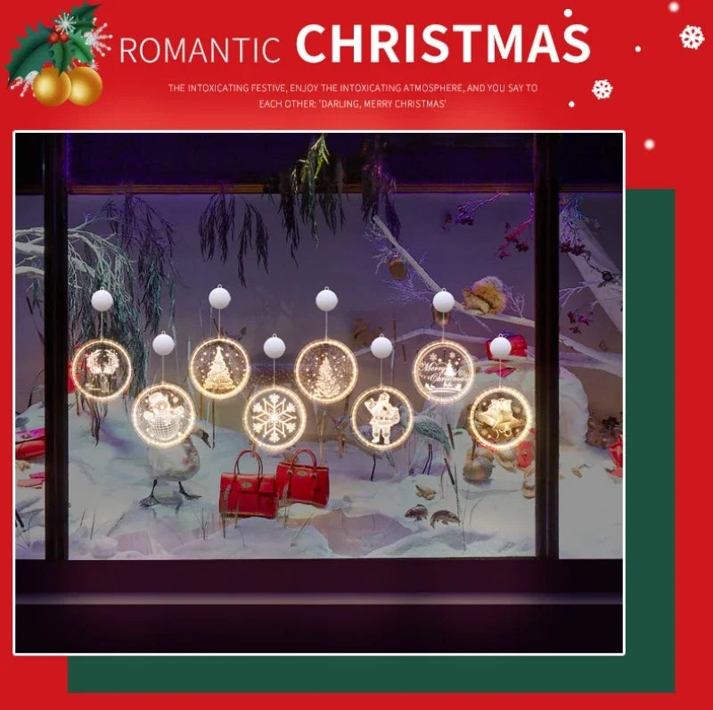 Merry Christmas LED Fairy Lights Santa Claus Elk Living Doors Windows Decoration New Year Gift