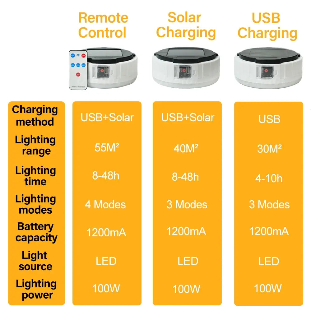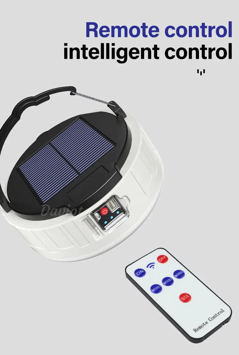 3. Multiple Lighting Modes: This camping light has full bright, half bright and SOS mode (remote solar charging only), which can last about 4-8 hours respectively. A row of blue lights shows the battery level so you can charge it in time.